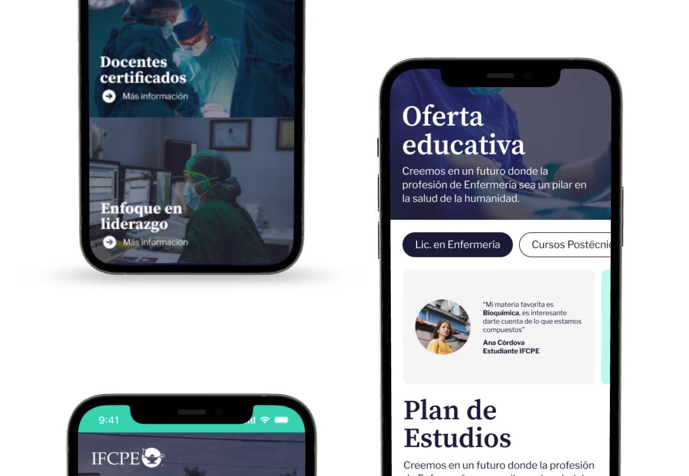 La escuela particular de enfermería IFCPE necesitaba un sitio web que transmitiera confianza, claridad y profesionalismo, al mismo tiempo que facilitara el proceso de admisión para aspirantes y ofreciera una navegación intuitiva para estudiantes y docentes.